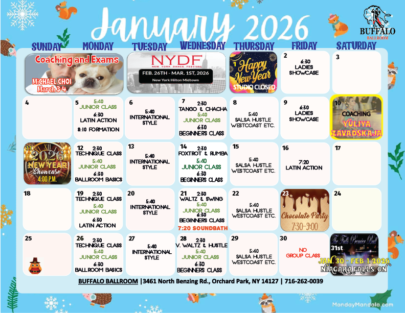 We offer a wide range of weekly group classes featuring a variety of dances and topics to improve your dancing! Our monthly themed dance parties are a time you can dance, laugh, and enjoy your time in a fun, pressure-free setting.